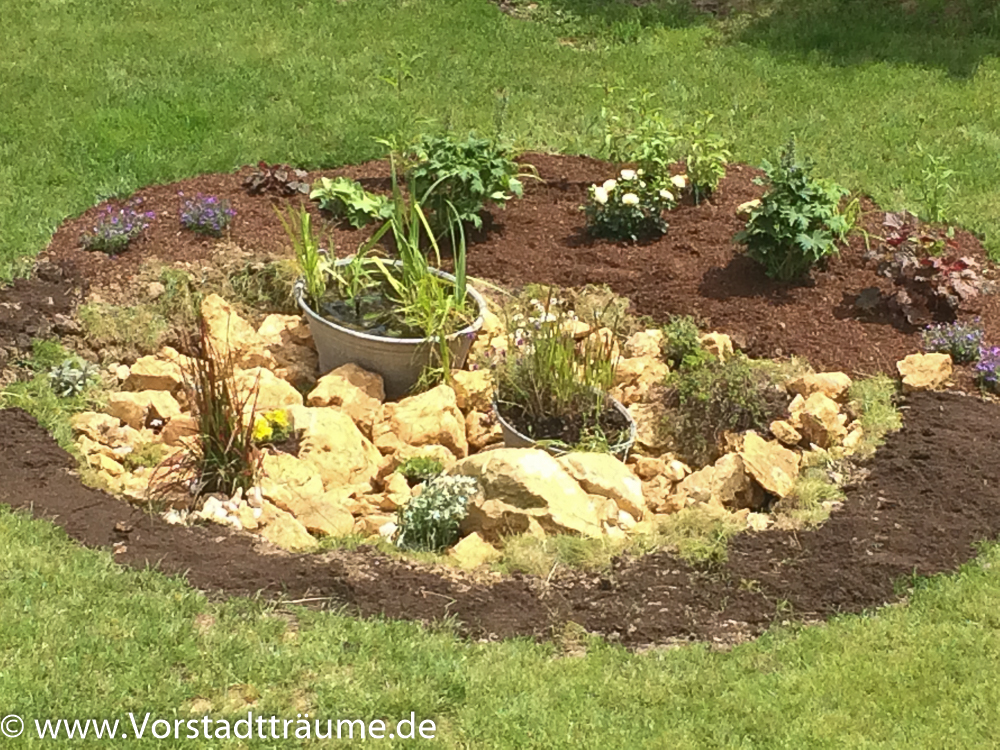 - In der Mitte des Gartens muss eine Idee her um das Retentionsbecken etwas zu gestalten. Den ganzen Beitrag findet ihr hier.