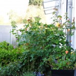 - Entlang des Müllhäuschens sollte ein schmales Beet mit niedrigen Kletterrosen entstehen um das Müllhäuschen zu begrünen