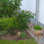 - Neben der Treppe zum Eingang sollte ebenfalls ein kleines Beet entstehen mit einem Busch als Zentrum um eine optische Trennung zu den anderen Häusern zu schaffen