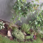 Auf diesem Bild sieht man im Hintergrund den Wasseranschluss der es seit 2014 möglich macht die Pflanzen direkt zu bewässern. Auch gut zu erkennen ist der Feigenbaum zu dieser Jahreszeit noch ohne Blätter der das Zentrum des kleinen Gartens bilden soll.