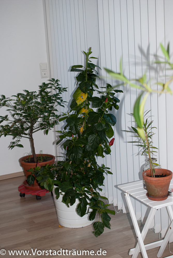 Einige unserer Pflanzen ziehen um in ihr Winterquartier. Bei uns kommen rein ins Haus 2 Oleander, ein Hibiscus, ein Kumquatsbaum und unsere Trompete.