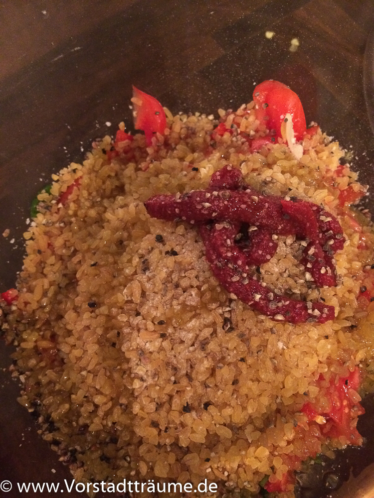 Für die Füllung habe ich Tipps von meinem Nachbarn aus der Türkei bekommen. Ein genaues Rezept nach dem ich gekocht habe hatte ich nicht.