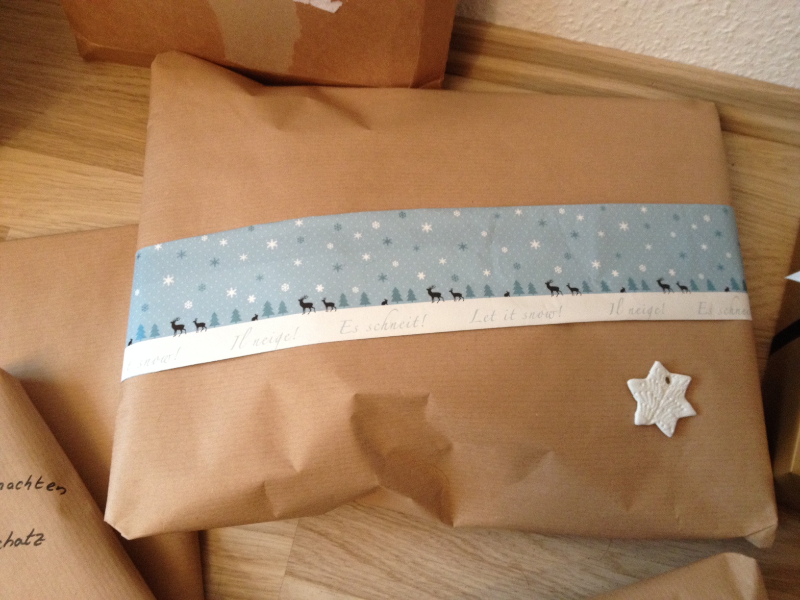 Packpapier ist oftmals günstiger als Geschenkpapier und lässt sich ebenfalls schön gestalten: