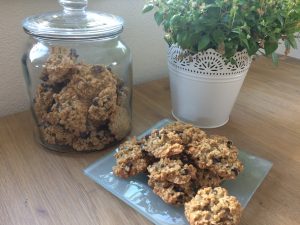 - Anschließend alle anderen Zutaten verrühren (funktioniert mit einem Löffel) und zu der abgekühlten Butter- Haferflockenmischung geben. Alles mit einem Löffel gut verrühren.