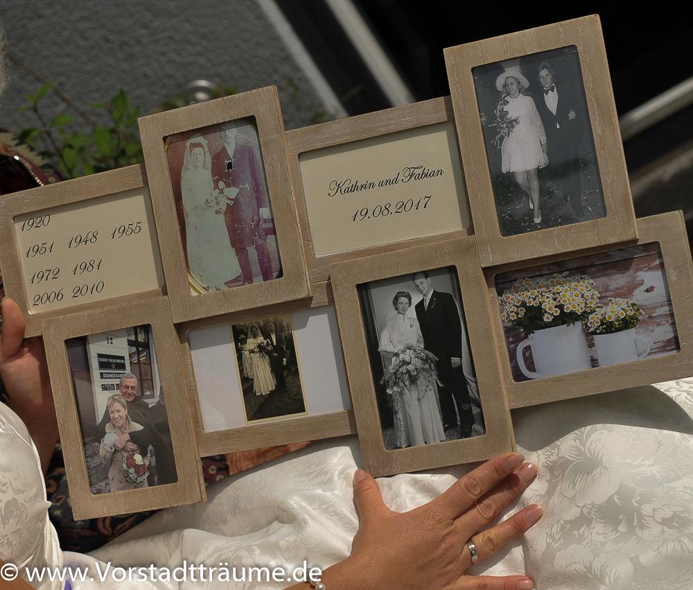 Mir gefällt die Idee die Familie in einem Rahmen zu vereinen und die verschiedenen Stile der Hochzeiten von 1920 – zu unserer Hochzeit 2017 darzustellen.