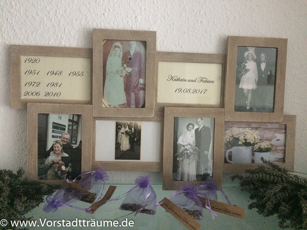 Für unsere Hochzeit habe ich Hochzeitbilder aus meiner Familie gesammelt. In dem Rahmen sollten Hochzeitsbilder unserer Eltern, Großeltern und Urgroßeltern zusammen kommen.