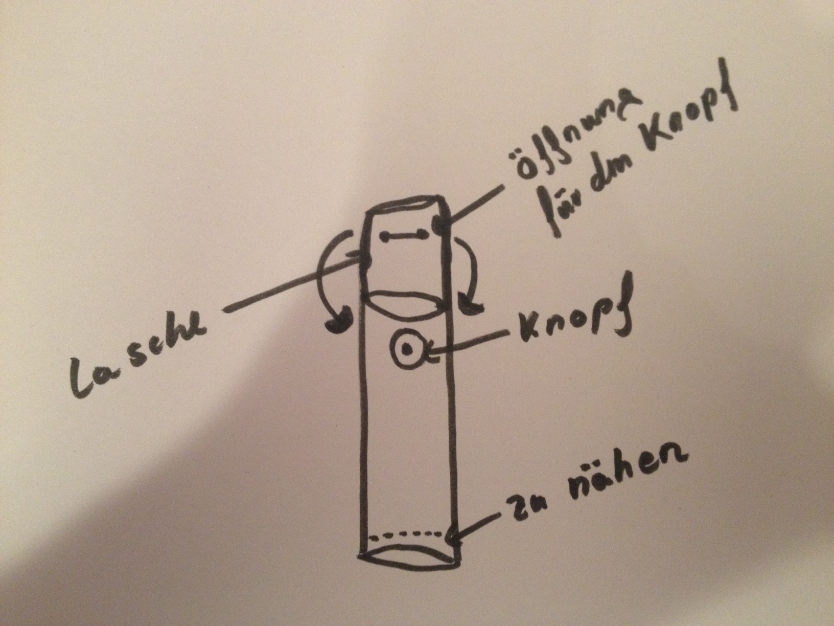 Mit einer Lochzange in die Lasche zwei Löcher machen und mit einem Cuttermesser das Stück dazwischen aufschneiden. Dies ist die Öffnung für den Knopf.