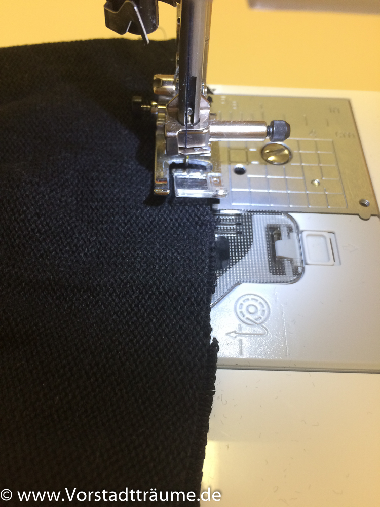 - Den Ärmel auf links drehen und entlang der Schnittkante zu nähen.