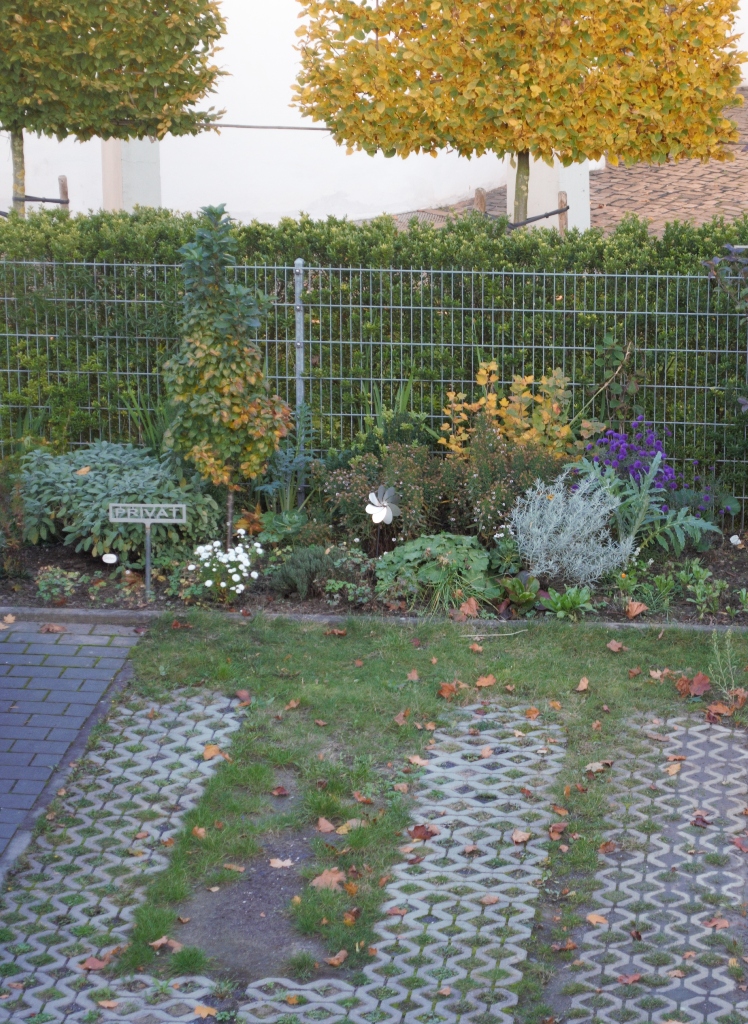 Hinter unserer Garage bin ich gespannt was meine Himbeeren und Brombeeren machen, ob sie so langsam angehen und wachsen. Dort will ich ein paar Zierkürbispflanzen setzen. Allerdings sind die Pflanzen dort auf sich gestellt, ich kann dort nicht gießen. Bereits im letzten Jahr hatte ich die Idee dort ein oder zwei Säulenobstbäume zu setzen. Vielleicht wird das in diesem Jahr etwas.