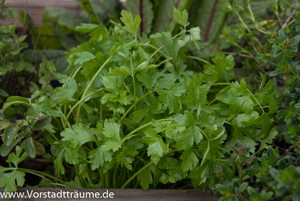 Petersilie ist wie jedes Jahr ein muss. Sie begleitet mich jedes Jahr durch den Sommer bis in den Herbst. Ich säe die Petersilie immer in einen Kasten, damit ich die Erde für das nächste Jahr komplett austauschen kann.