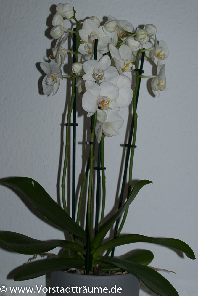 Lange Zeit stand ich mit meinen Orchideen auf Kriegsfuß. Mein Mann mag sie gerne und ab und zu habe ich einfach mal eine geschenkt bekommen. So lang sie geblüht haben war alles gut aber dann wenn die Blüte vorbei war wollte sie bei mir auch nicht wieder blühen. Wenn dann doch mal sich ein Blütenstängel hat blicken lassen habe ich es geschafft diesen abzubrechen. Es hat sehr lange gedauert bis ich verstanden habe im Badezimmer passt die Luftfeuchtigkeit aber die Helligkeit reicht einfach nicht ganz aus. Seit ich sie an ein anderes Fenster mit Morgensonne gestellt habe geben sie wieder richtig Gas.